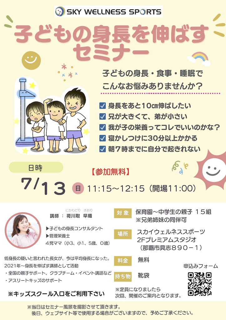 このセミナーでは、0歳〜中学生の親子を対象に、 「身長を伸ばすために本当に大切なこと」 をわかりやすくお伝えします。